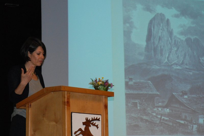 Ingrid Runggaldier, Forscherin der Tourismus- und Alpinismusgeschichte, wird einen Vortrag in ladinischer Sprache über die Entwicklung des Tourismus in der zweiten Hälfte des 19. Jahrhunderts halten, dabei wird sie unter anderem auf die Entstehung der alpinen Vereine, auf die Professionalisierung und Organisierung der Bergführer sowie auf den Bau von Wegen und Schutzhütten, speziell auf jenen der Langkofelhütte seitens der Akademischen Sektion Wien des DuÖAV im Jahr 1894 eingehen. Einblicke in diese Geschichte ergeben sich durch das “Fremdebuch” der Langkofelhütte, das Anhand von Bildern vorgestellt wird.