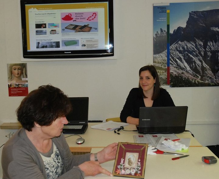 Das mitgebrachte Lieblingsobjekt wird gemeinsam mit fachkundigen MitarbeiterInnen in die virtuelle Schatztruhe aufgenommen.