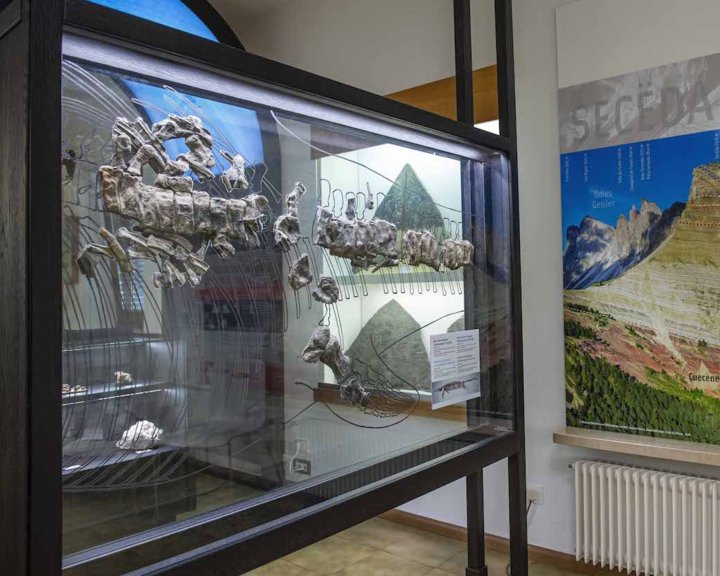 A chi ti va pa l merit dla criazion, a ce un capriz dla natura ti ie pa debit la Dolomites cun si variazion de formes y culëures, che nes fej spané su i uedli y nmaruië coche dugun autri crëps al mond?A chësta dumanda ti respuend l Museum cun la culezion scientifica plu rica sun la Dolomites uzidenteles. Dastramp de biei fossìi de plantes y tieres dl mer y dla tiera documentea l’evoluzion dla vita y la furmazion di crëps dolomitics da dan passa 250 milions de ani incà.